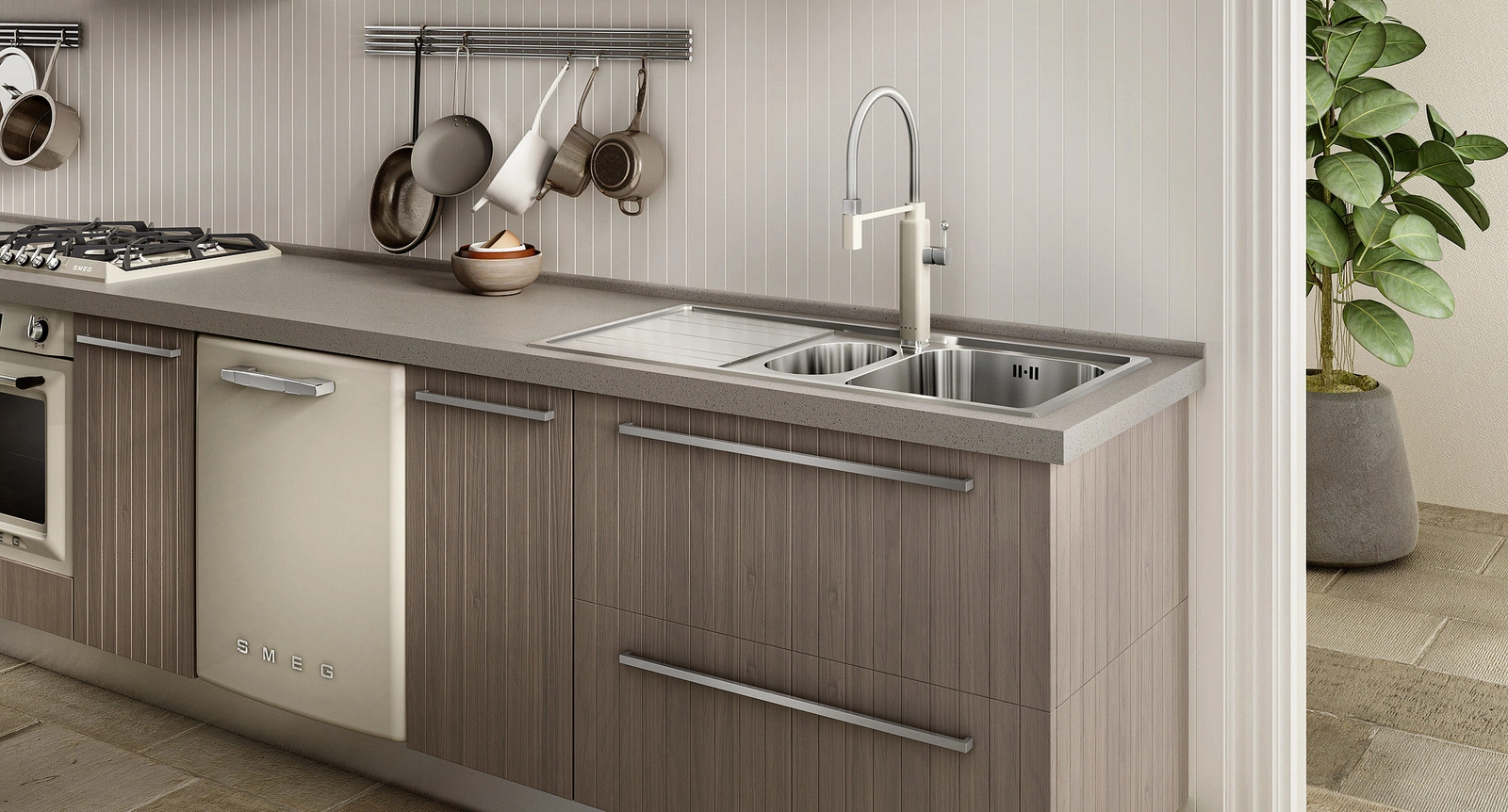 Wybierając tę baterię, inwestujesz w produkt, który wniesie do Twojej kuchni niepowtarzalny klimat vintage, a jednocześnie zapewni komfort użytkowania na co dzień. Dzięki łatwej instalacji oraz uniwersalnym rozmiarom bateria Smeg MDF50CR z łatwością dopasuje się do większości zlewozmywaków dostępnych na rynku. Spraw, by Twoja kuchnia zyskała wyjątkowy charakter z baterią Smeg 50s MDF50CR w kolorze kremowym.