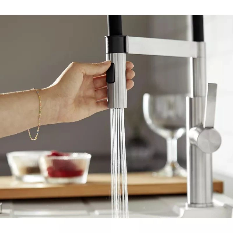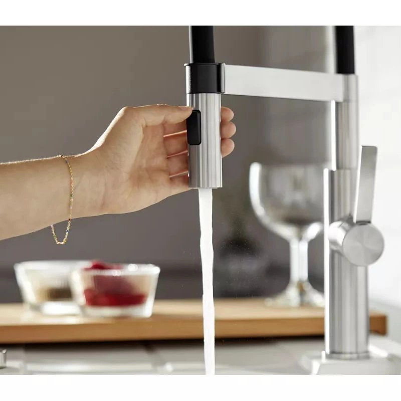 Bateria kuchenna BLANCO SONEA-S Flexo to elegancki i funkcjonalny model, który doskonale sprawdzi się w każdej kuchni. Wykonana została z wysokiej jakości stali szlachetnej o szczotkowanej powierzchni, która jest odporna na zarysowania i uszkodzenia. Bateria posiada wyciąganą wylewkę, która umożliwia swobodne mycie dużych naczyń i garnków. Dzięki obrotowi wylewki o 360°, bateria jest niezwykle łatwa w użytkowaniu.