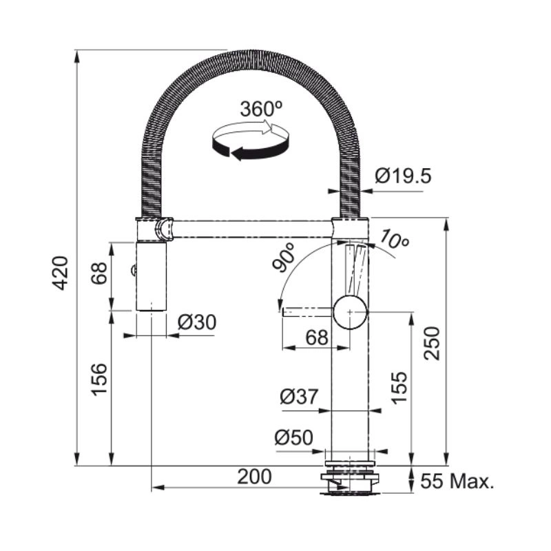 - Rodzaj wylewki: ruchoma z funkcją prysznica