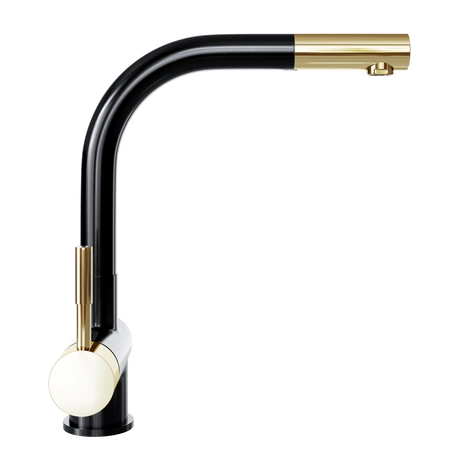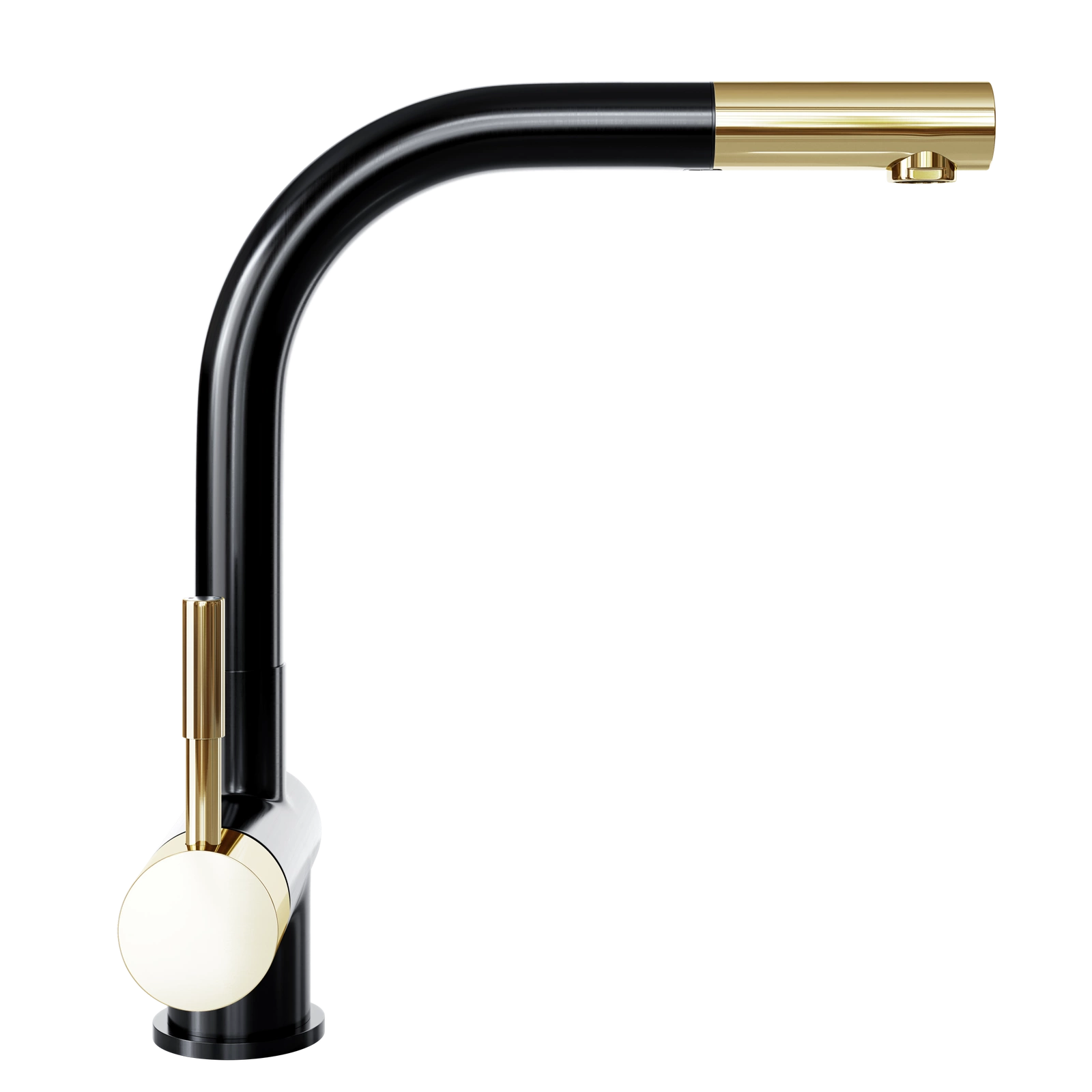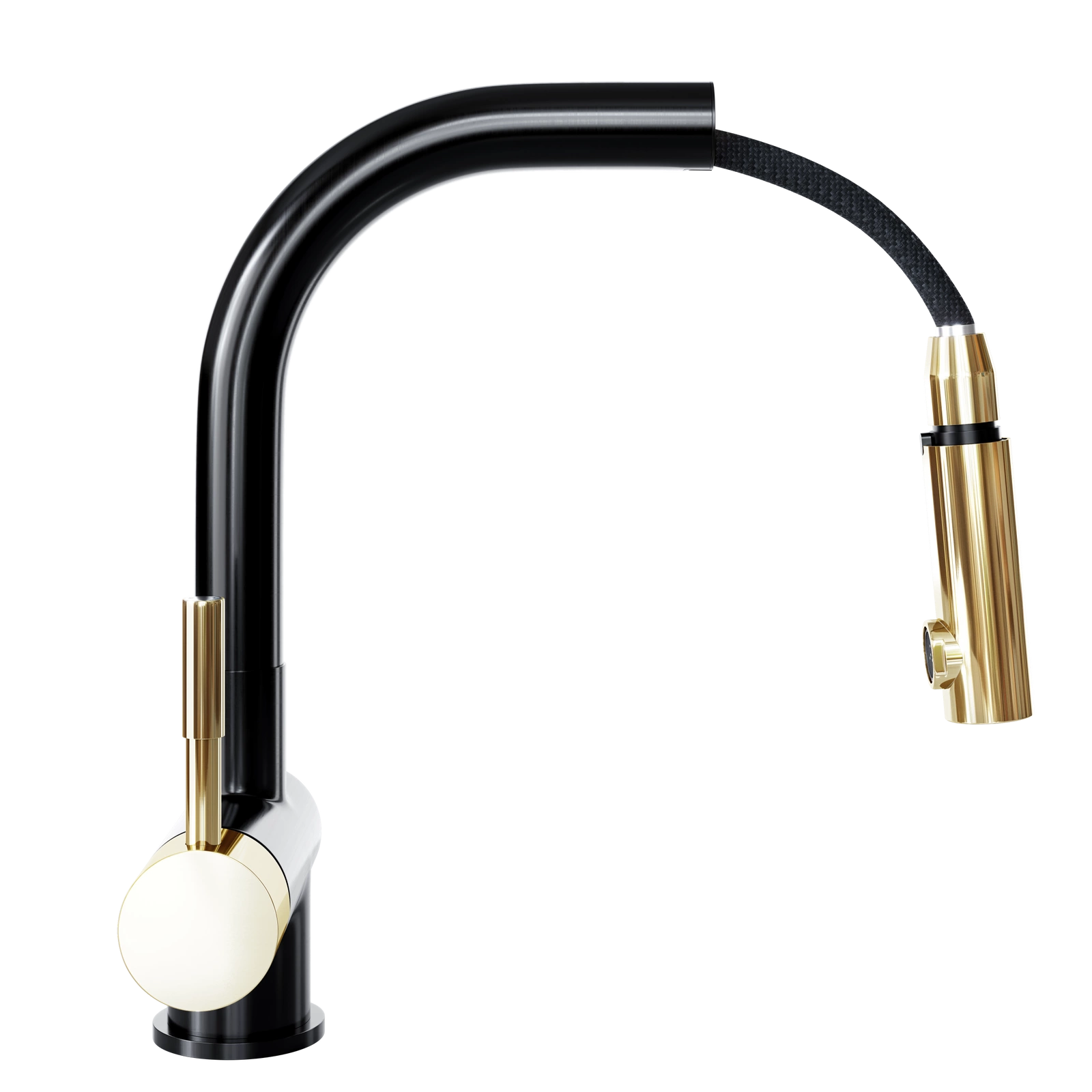 Czarna bateria kuchenna ze złotą wyciąganą wylewką