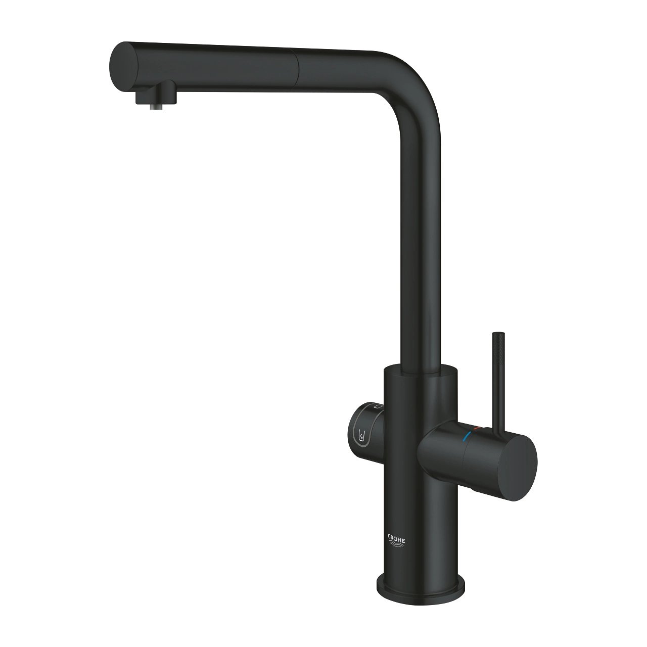 Ciesz się nowoczesnym komfortem w swojej kuchni dzięki GROHE Blue Home Zestawowi startowemu z wyciąganą wylewką w kształcie L. 5-stopniowy filtr skutecznie redukuje kamień oraz usuwa cząsteczki szkodliwych substancji, pozostawiając jednocześnie zdrowe minerały niezbędne dla organizmu. Filtr i butla CO₂ są dyskretnie schowane w jednostce chłodzącej, która mieści się w standardowej szafce kuchennej. Wbudowane diody LED na baterii informują o stanie pracy, a standardowa dźwignia służy do łatwej obsługi wody użytkowej. To inteligentne i eleganckie rozwiązanie zostało zaprojektowane z myślą o maksymalnej funkcjonalności i wyjątkowym wzornictwie.