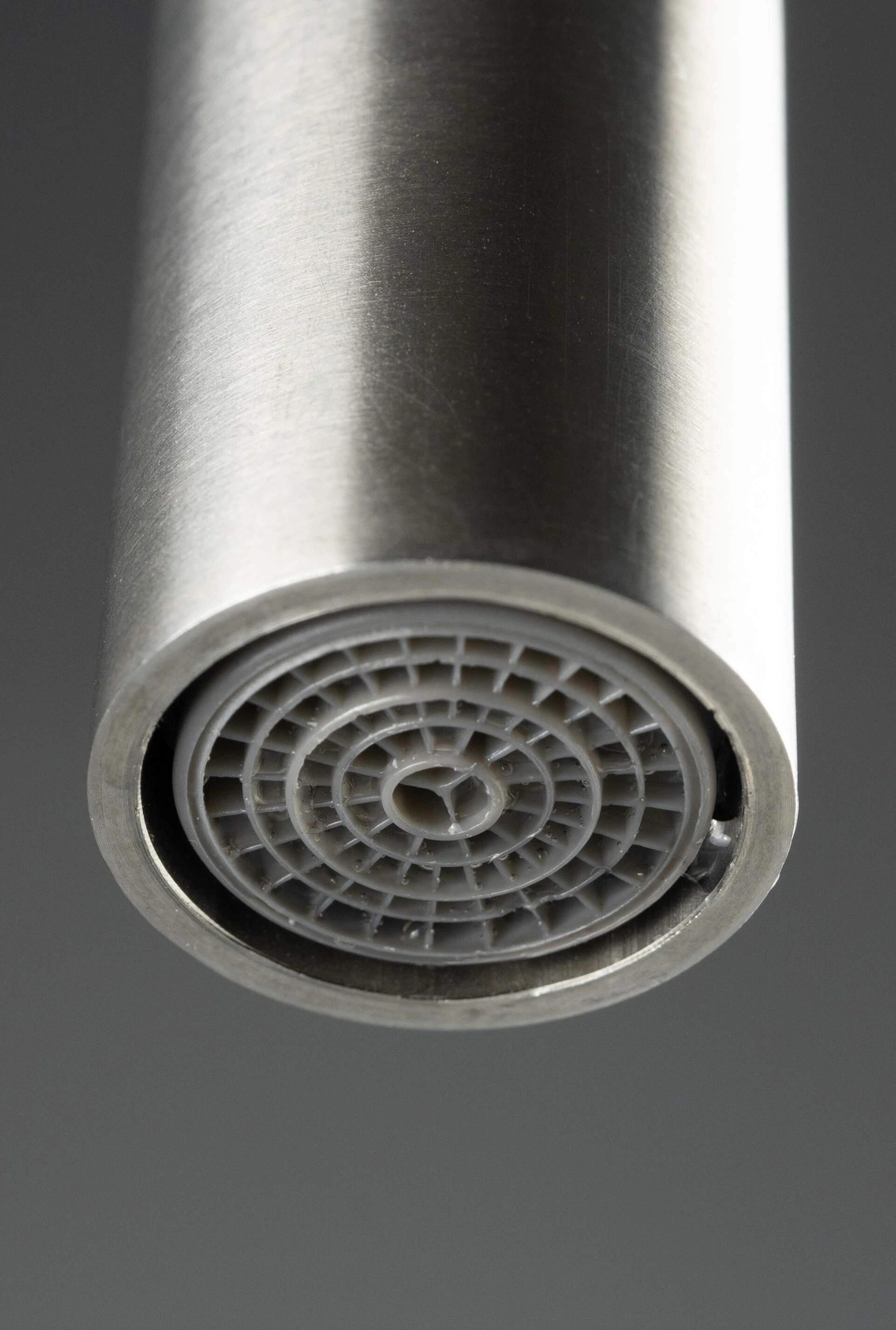 Funkcjonalna bateria kuchenna zaprojektowana została z myślą o wysokiej użyteczności oraz estetycznym wyglądzie. Elegancki design sprawia, że pasuje do wnętrz nowoczesnych, ale też skandynawskich czy bardziej tradycyjnych. Bateria zlewozmywakowa posiada aerator, który redukuje życie wody, co przy ręcznym myciu naczyń jest bardzo istotne. Dodatkowo napowietrzony strumień jest bardziej miękki.