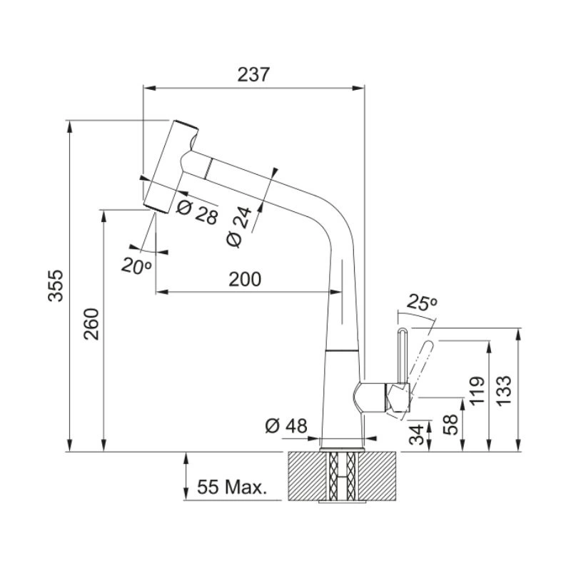 - Rodzaj wylewki: Wyciągana z funkcją prysznica