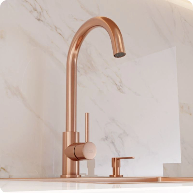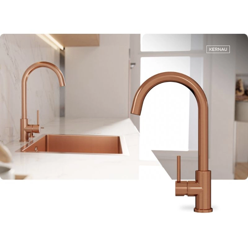 Szukasz wyjątkowej baterii kuchennej, która nie tylko zachwyca designem, ale również zapewnia najwyższą funkcjonalność? Bateria kuchenna KERNAU KWT 27 to idealny wybór dla Ciebie! Wykonana z najwyższej jakości stali nierdzewnej i wykończona w ponadczasowym miedzianym kolorze, bateria ta stanie się prawdziwą ozdobą Twojej kuchni.