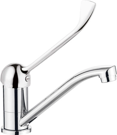Baterie z dźwignią Clinic są przykładem komfortowej i jednocześnie maksymalnie bezpiecznej obsługi. Strumień wody można włączyć dłonią, przedramieniem albo łokciem. Rozwiązanie to zaprojektowane zostało z myślą o miejscach, w których ważny jest wysoki poziom higieny. To częsty wybór w klinikach, salonach urody czy punktach gastronomicznych.