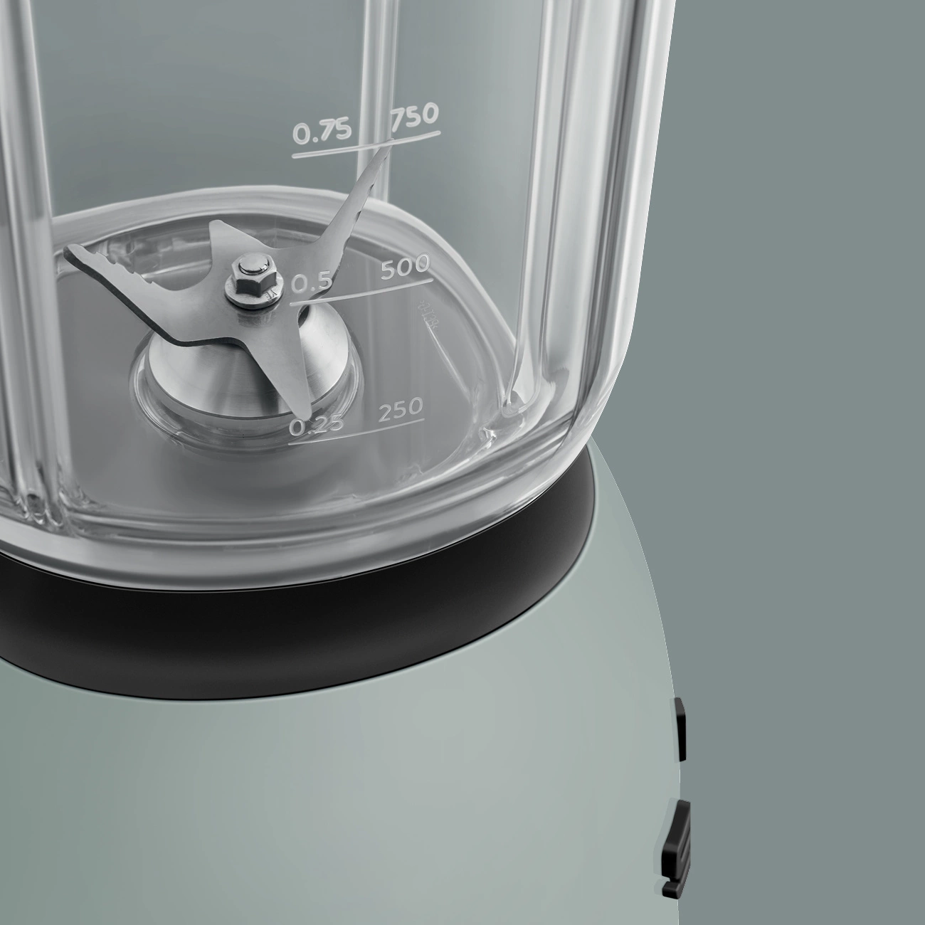 Blender BLF03PSGEU to wyjątkowe połączenie kultowego wzornictwa SMEG z lat 50. i sportowej estetyki Porsche. Obudowa w kolorze Shade Green, ozdobiona charakterystycznym paskiem Porsche oraz matowymi czarnymi detalami, nadaje urządzeniu elegancki i dynamiczny wygląd, który wyróżnia się w każdej nowoczesnej kuchni.