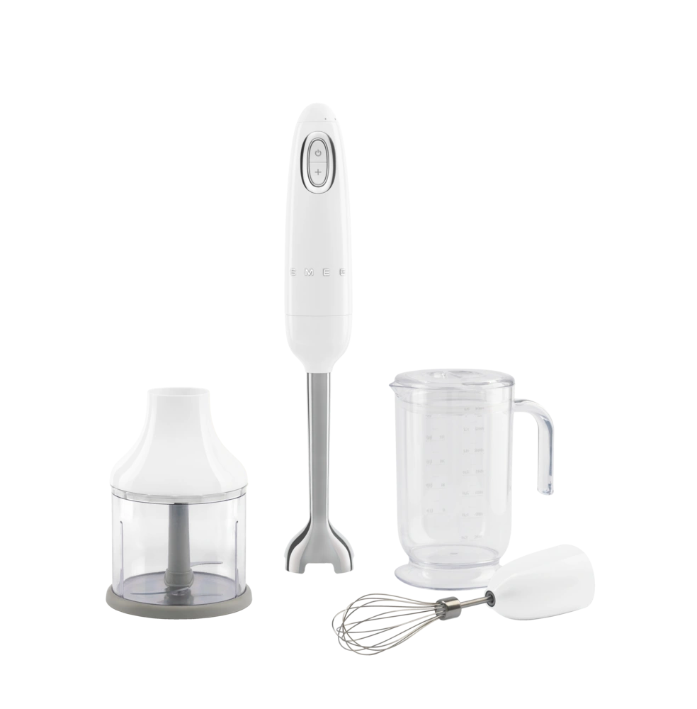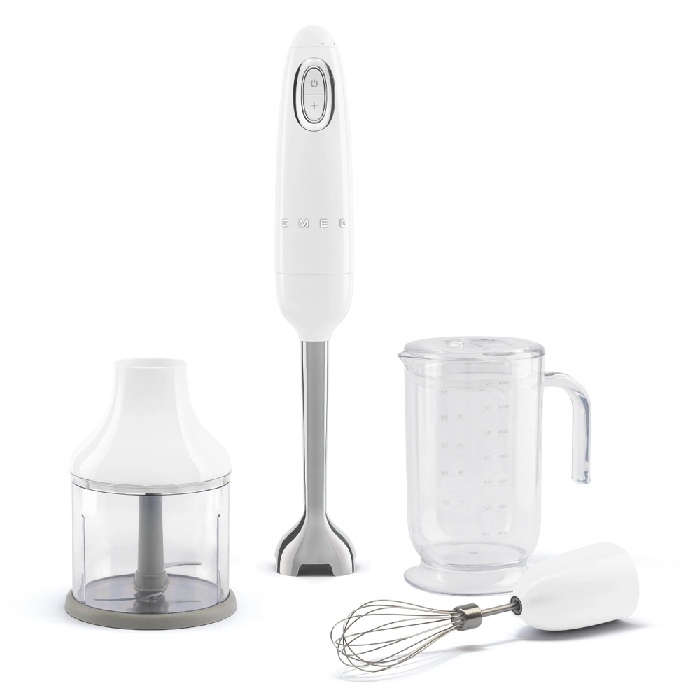 Blender ręczny z akcesoriami HBF03WHEU - Smeg to wyjątkowe urządzenie, które połączy w Twojej kuchni funkcjonalność z niepowtarzalnym stylem. Ten nowoczesny blender ręczny wyróżnia się nie tylko wysoką jakością wykonania, ale także eleganckim, retro designem charakterystycznym dla marki Smeg. Idealny dla osób szukających praktycznych rozwiązań oraz estetycznych akcesoriów kuchennych.