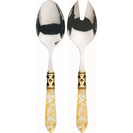 Bugatti ALADDIN GOLD- Komplet (łyżka do serwowania + łyżka do sałaty) / kolor perłowa kość słoniowa ALD1G-N4214/15