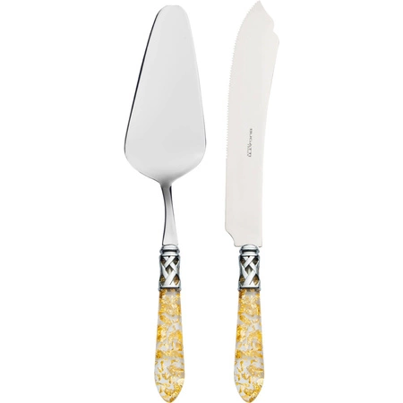 Łopatka do ciasta ALADDIN została wyposażona w odpowiednio wyprofilowaną powierzchnię, umożliwiającą łatwe i szybkie podnoszenie kawałków ciasta bez ryzyka ich uszkodzenia. Nóż do krojenia charakteryzuje się ostrzem zapewniającym precyzyjne i równe porcjowanie różnych rodzajów wypieków. Oba elementy zestawu doskonale sprawdzą się podczas rodzinnych uroczystości, spotkań towarzyskich czy profesjonalnych przyjęć.
