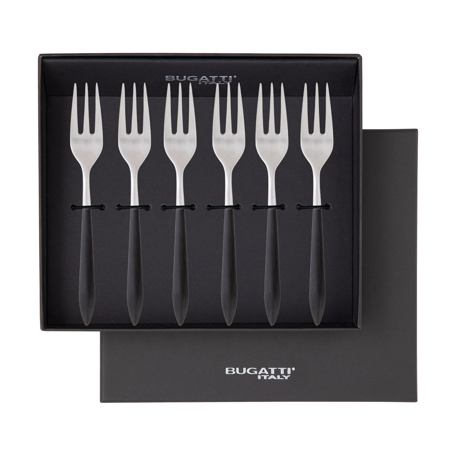Bugatti ARES czarny zestaw 6 widelczyków do ciasta w pudełku ASBN-004N17