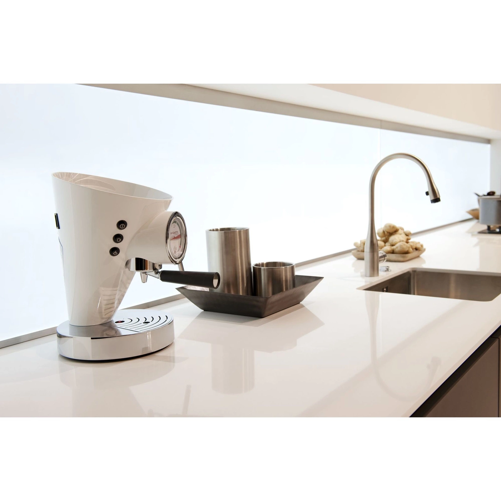 Ekspres do kawy Bugatti DIVA w kolorze kremowym to doskonałe połączenie nowoczesnego designu z funkcjonalnością. Produkt ten wyróżnia się nie tylko eleganckim wykończeniem, które wprowadzi do każdej kuchni wyjątkowy klimat, ale także precyzyjnym wykonaniem. Marka BUGATTI słynie z produkcji urządzeń o najwyższym standardzie, a ekspres DIVA jest tego doskonałym przykładem. Jego subtelna kremowa barwa sprawia, że doskonale wpisuje się w różnorodne aranżacje wnętrz.