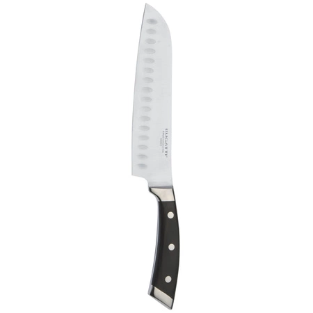 Nóż Santoku 19 cm Bugatti ERGO PAKKA to niezastąpiony element wyposażenia nowoczesnej kuchni. Solidna konstrukcja, ergonomia oraz stylowy wygląd sprawiają, że jest to produkt idealny do precyzyjnego krojenia różnorodnych składników. Niezależnie od tego, czy jesteś profesjonalnym kucharzem, czy amatorem gotowania, ten nóż stanie się Twoim niezawodnym pomocnikiem na lata.