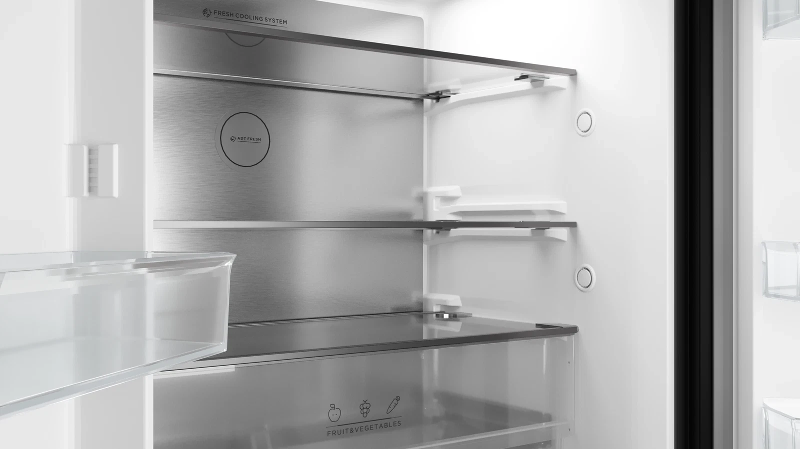 Strefy świeżości totalnej: Specjalne szuflady z kontrolą wilgotności (np. Humidity Control) pozwalają stworzyć idealne środowisko dla warzyw, owoców i delikatesów. Sałata pozostaje chrupiąca przez wiele dni, a mięso i ryby zachowują swoją świeżość znacznie dłużej.