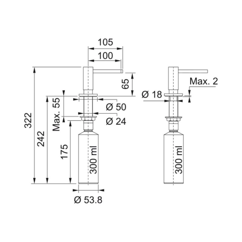 Dozownik można łatwo zamontować na zlewozmywaku lub blacie kuchennym za pomocą dołączonego zestawu montażowego. Wystarczy wywiercić otwór o średnicy 35 mm i przykręcić dozownik śrubami.