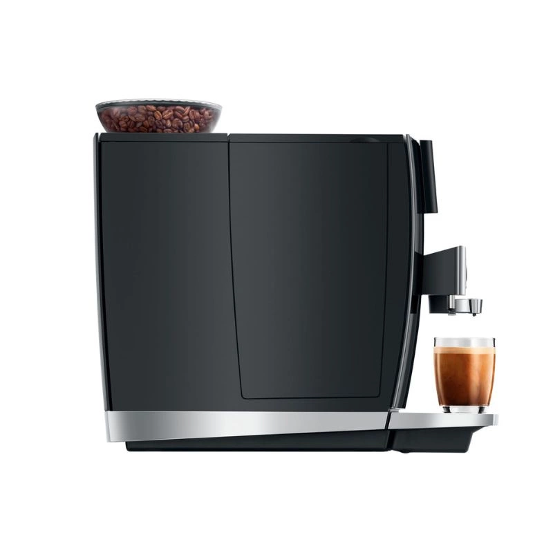 Design mocy i elegancji: ekspres ciśnieniowy JURA GIGA 10 nie tylko zaskakuje swoimi funkcjonalnościami, ale również urzeka designerskim wzornictwem. Kolor Diamond Black, chromowane elementy oraz turbiny pojemników na ziarna sprawiają, że ten ekspres to prawdziwa perełka w kuchni. Dodatkowo, nowa tacka na filiżanki harmonijnie dopełnia całość, tworząc niepowtarzalny wygląd, który przyciąga uwagę i dodaje prestiżu każdemu wnętrzu.
