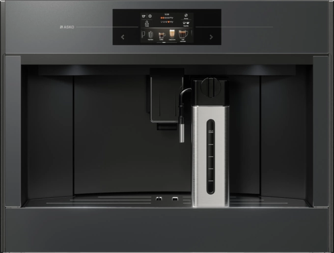 Ekspres ASKO CM8478GG to elegancka, szara kolorystyka i minimalistyczna linia, która idealnie komponuje się z nowoczesnymi meblami kuchennymi. Dzięki zabudowie oszczędza miejsce, a kolorowy wyświetlacz dotykowy sprawia, że obsługa jest niezwykle prosta.