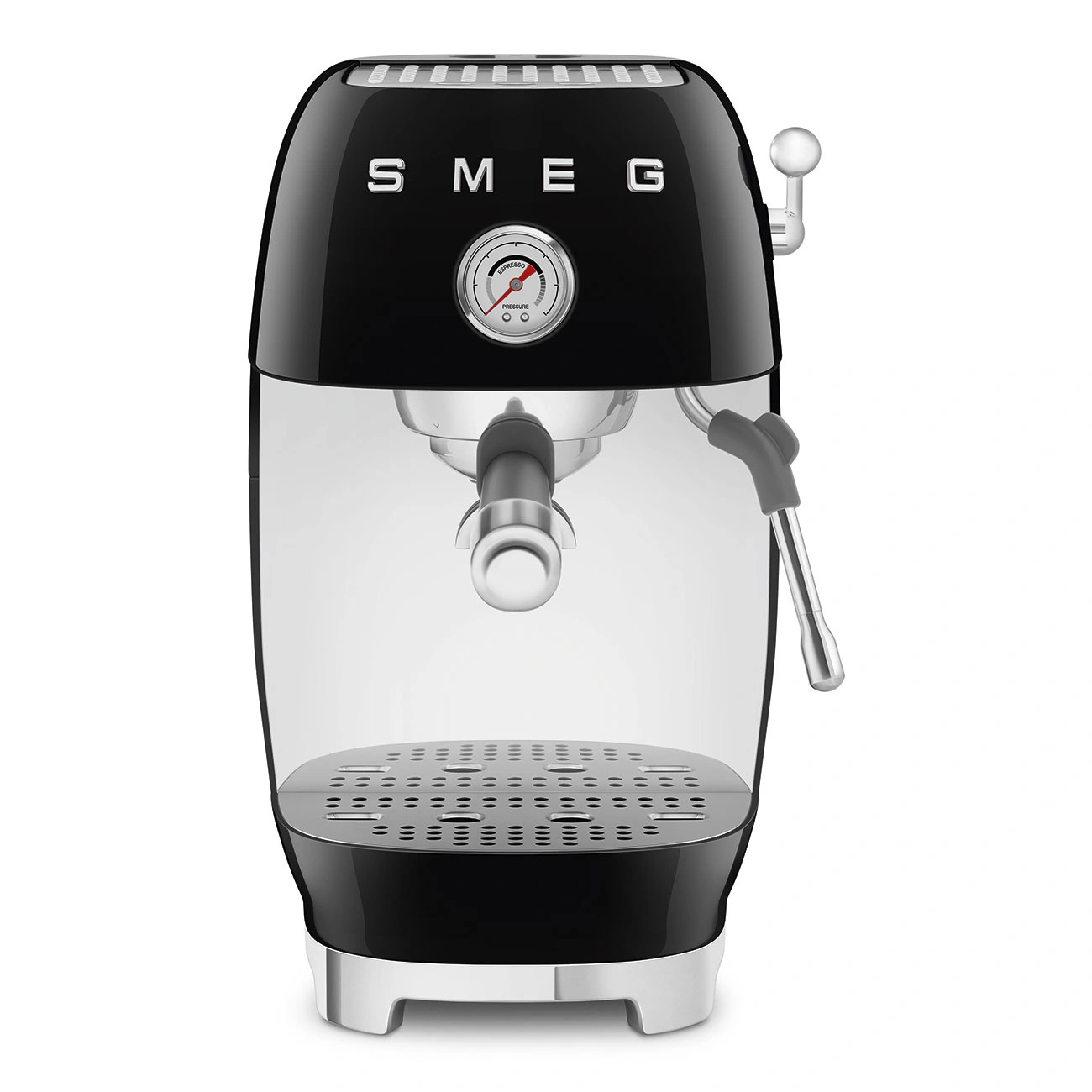 Ekspres do kawy, kolbowy, z funkcją Cold Brew, system grzewczy Thermoblock, ciśnienie: 15 bar, 4 przyciski (w tym 1 do zmiany menu), 2 wersje menu - białe i niebieskie, manometr, pojemność pojemnika na wodę: 1,4 l, średnica portafiltra: ø58 mm, 4 filtry (o pojedynczej i podwójnej ściance, na 1 i 2 filiżanki), regulacja wielkości kawy, regulacja temperatury kawy, regulacja twardości wody, pasywny podgrzewacz filiżanek, tamper, schowek na akcesoria, akcesoria do czyszczenia (igła, szczoteczki, krążek do czyszczenia grupy)