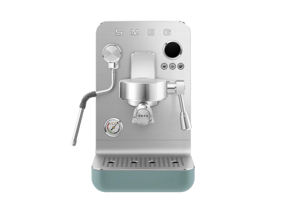 Smeg EMC02EGMEU wyposażony jest w mocny bojler i profesjonalną pompę o ciśnieniu 15 barów, co zapewnia odpowiednią ekstrakcję ziaren i tworzy kremową piankę. Kolbowy ekspres pozwala na użycie zarówno kawy mielonej, jak i saszetek ESE, co daje szerokie możliwości wyboru ulubionego rodzaju napoju. Regulacja pary umożliwia przygotowanie idealnej pianki do cappuccino czy latte macchiato, a wbudowany spieniacz mleka podnosi komfort użytkowania na wyższy poziom.