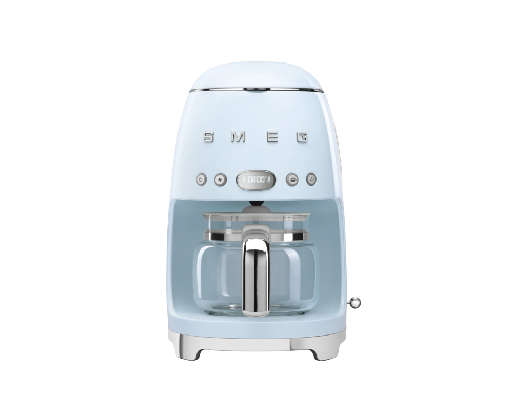 Estetyka ekspresu przelewowego Smeg w pastelowym błękicie to prawdziwa ozdoba każdej kuchni. Jego delikatne, harmonijne barwy wprowadzą do wnętrza nutę świeżości i subtelności, podkreślając jednocześnie charakter retro vintage, tak charakterystyczny dla produktów marki Smeg. To nie tylko urządzenie do parzenia kawy, ale również stylowy dodatek, który przyciąga wzrok i dodaje wnętrzu wyjątkowego klimatu.