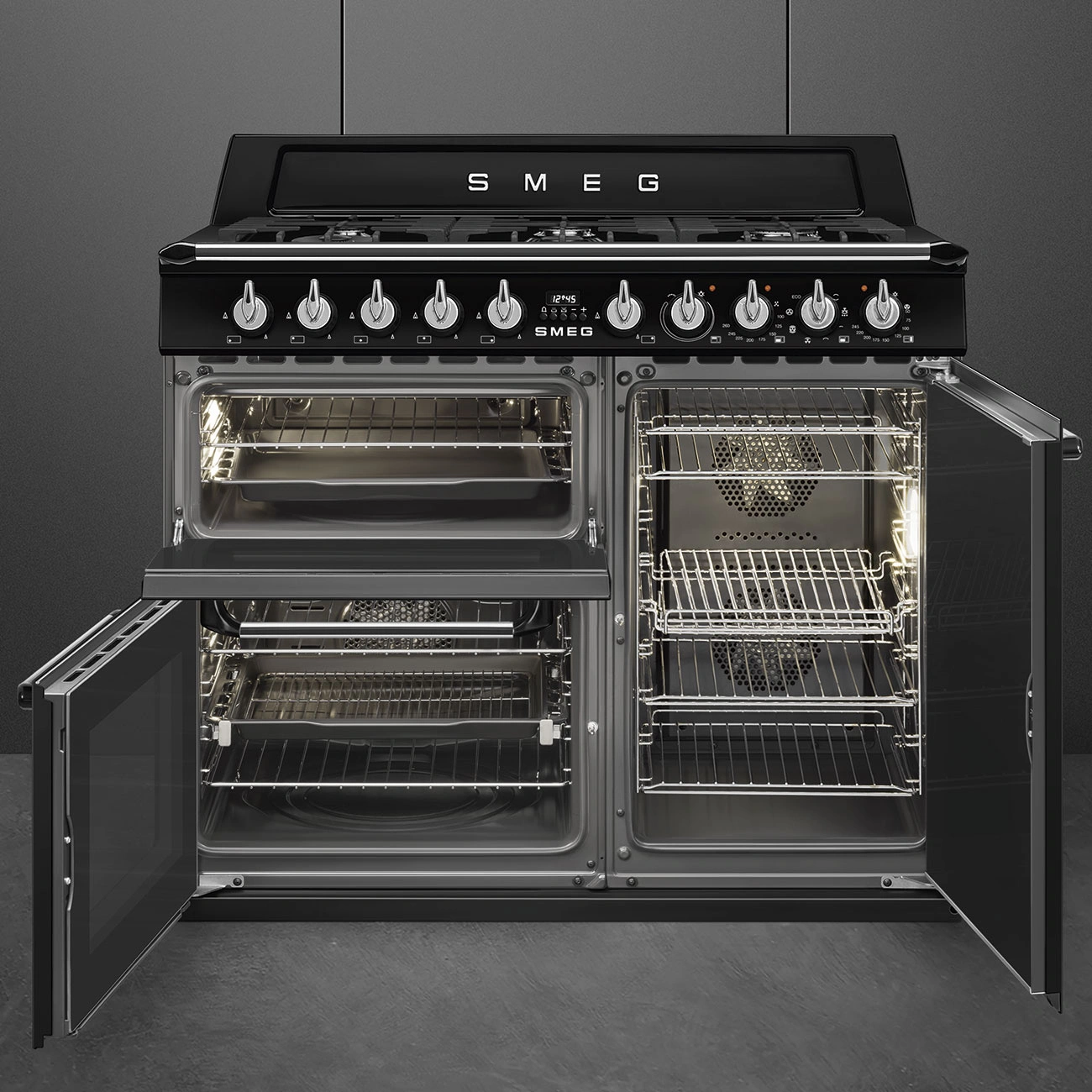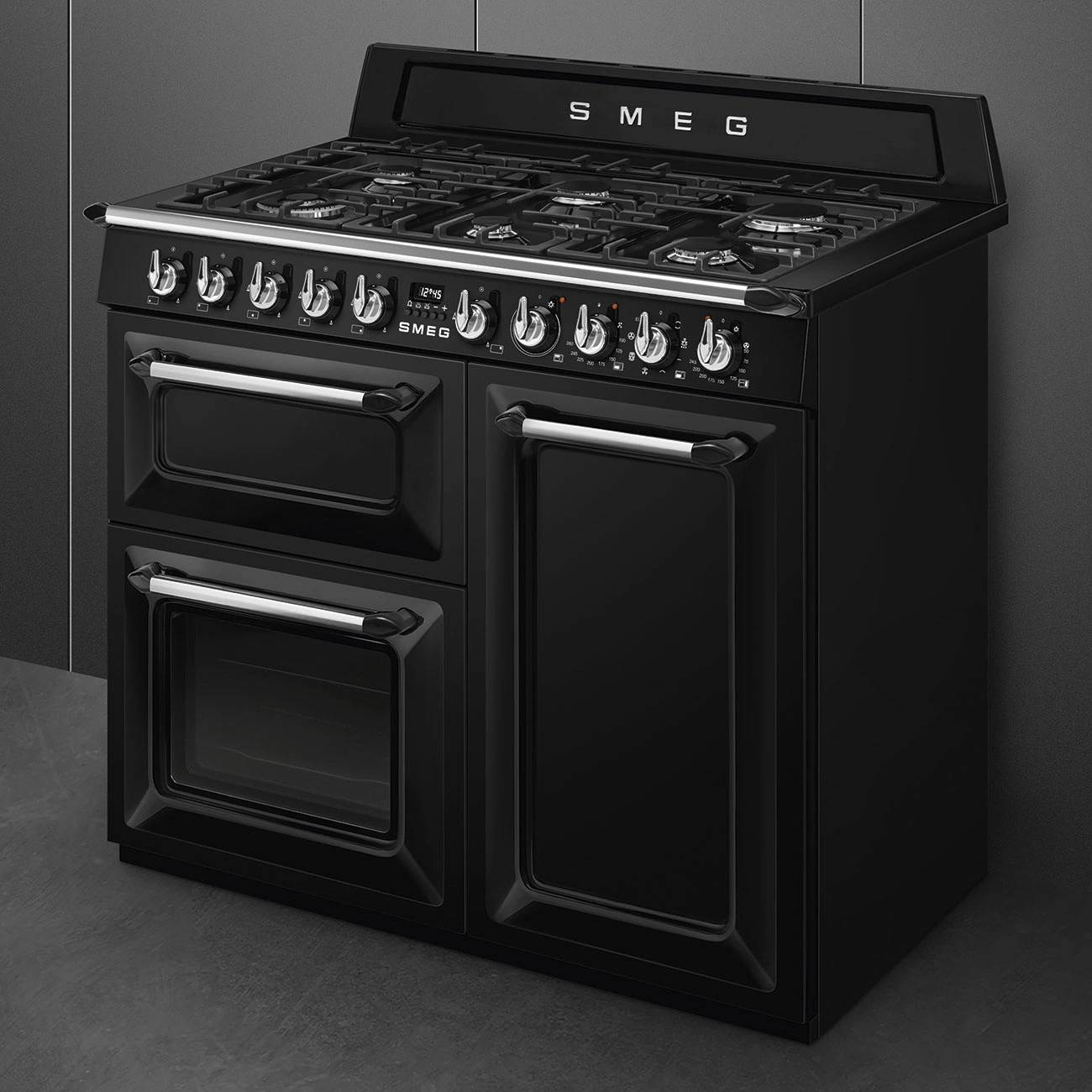 Model TR103BL to kuchnia o szerokości 100 cm, wyposażona w zaawansowane technologie grzewcze oraz starannie zaprojektowane detale. Wbudowany piekarnik z wieloma funkcjami umożliwia precyzyjne przygotowanie potraw, a płyta grzewcza gwarantuje efektywne i szybkie gotowanie. Dzięki temu kuchnia wolnostojąca Smeg Victoria staje się sercem każdej kuchni, zarówno w domach jednorodzinnych, jak i w mieszkaniach.