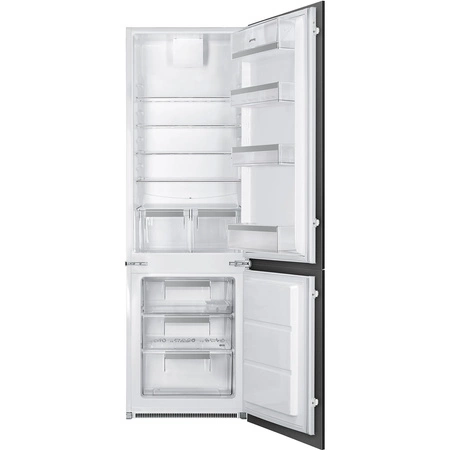 Model C81721E wyposażono w intuicyjny system sterowania, który umożliwia precyzyjną regulację temperatury zarówno w chłodziarce, jak i w zamrażarce. Dzięki temu można łatwo dostosować urządzenie do indywidualnych potrzeb użytkownika. Chłodziarko-zamrażarka Smeg posiada także praktyczne rozwiązania, takie jak półki ze szkła hartowanego, pojemne szuflady na warzywa i owoce oraz wygodne przegródki na drzwi, które pomagają efektywnie zagospodarować przestrzeń. Dodatkowo, funkcja automatycznego odszraniania w chłodziarce eliminuje konieczność ręcznego rozmrażania, co znacznie ułatwia codzienne użytkowanie.