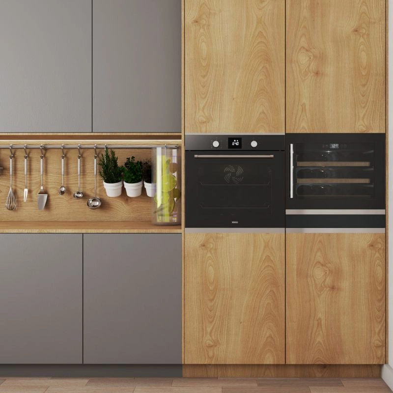 Prezentowana winiarka BRGSW18 wyróżnia się eleganckim i nowoczesnym designem, który idealnie wpasuje się w wystrój każdej kuchni. Kompaktowe wymiary (591 x 557 x 455 mm) sprawiają, że winiarka z łatwością mieści się w szafce kuchennej. Cicha praca (38 dB) nie zakłóca spokoju Twojej kuchni, nawet podczas nocnych degustacji.