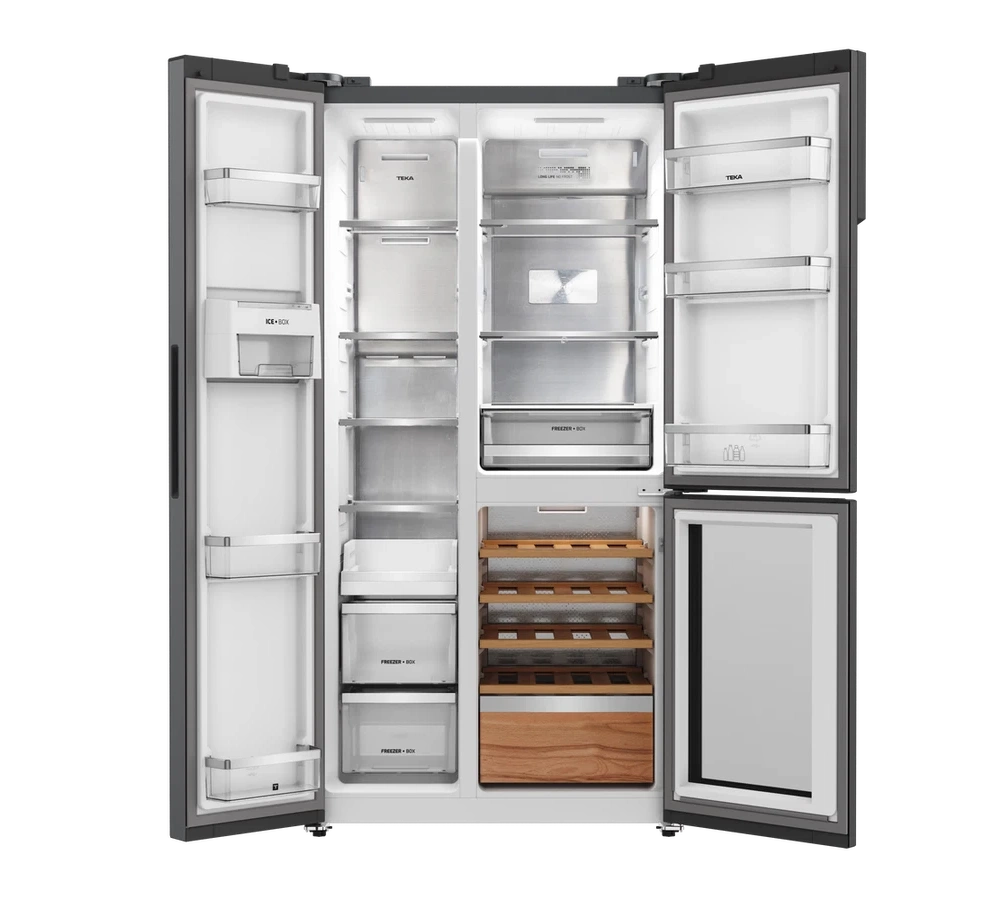 Czy marzysz o lodówce, która łączy w sobie innowacyjne rozwiązania, pojemność i styl? TEKA RLF 85950 GBK w czerni to model, który spełni nawet najwyższe oczekiwania! Dzięki systemowi Side by Side oraz dedykowanej winiarce zapewnia doskonałą organizację przestrzeni, a jej designerski wygląd dopełni aranżację Twojej kuchni.