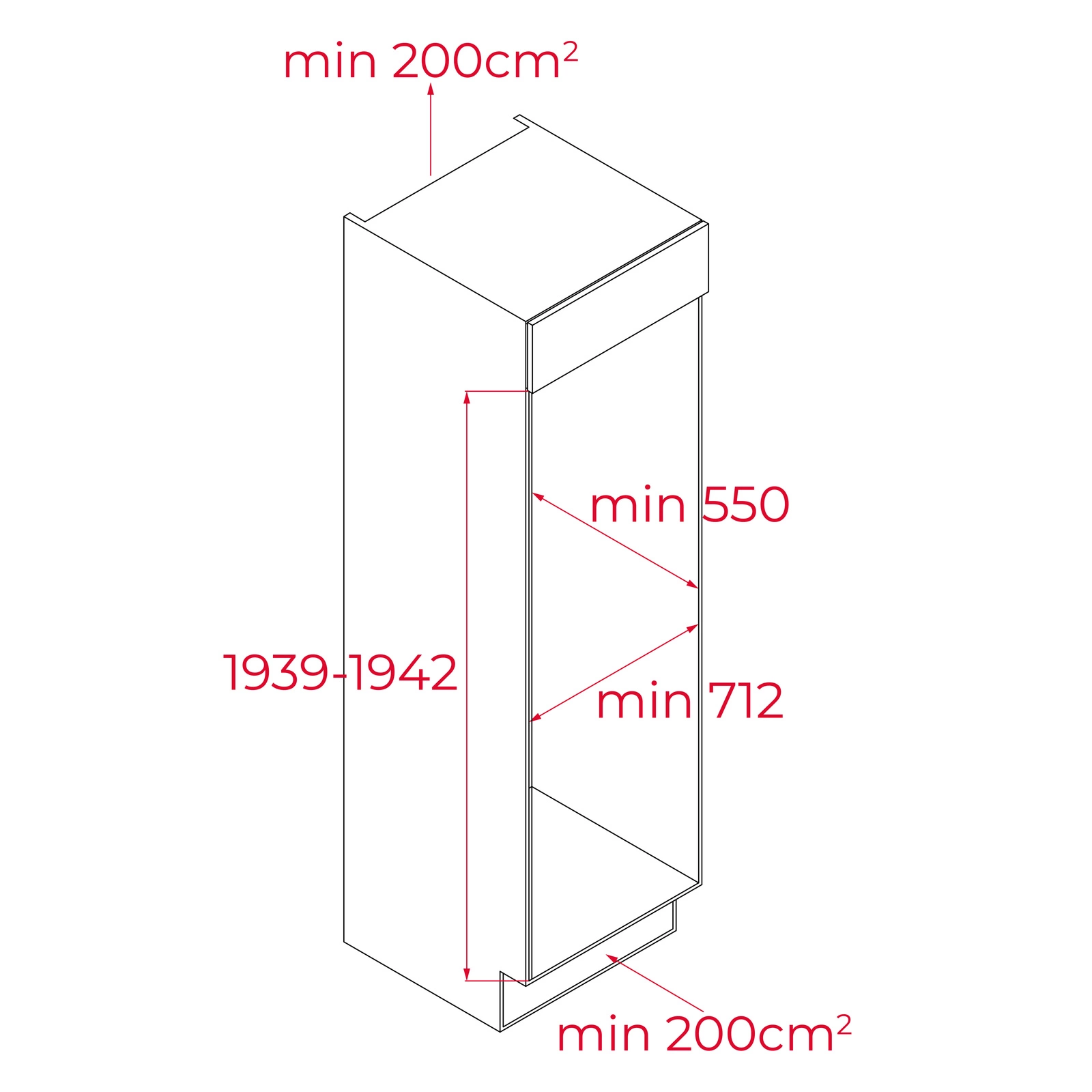 - Nisza w zabudowie (cm): Height: 1939-1942mmWidth: ≥712mmDepth: ≥550mm