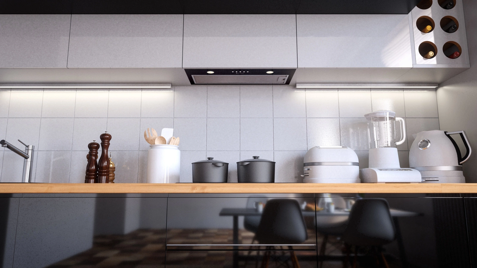 - Oświetlenie diodowe (2 x 3 W) zapewni rozświetlenie przestrzeni znajdującej się bezpośrednio pod okapem.