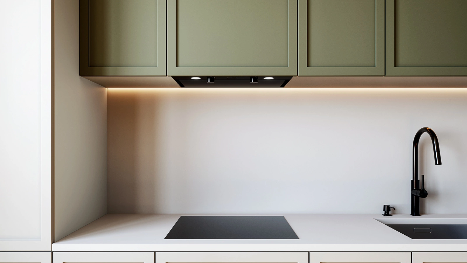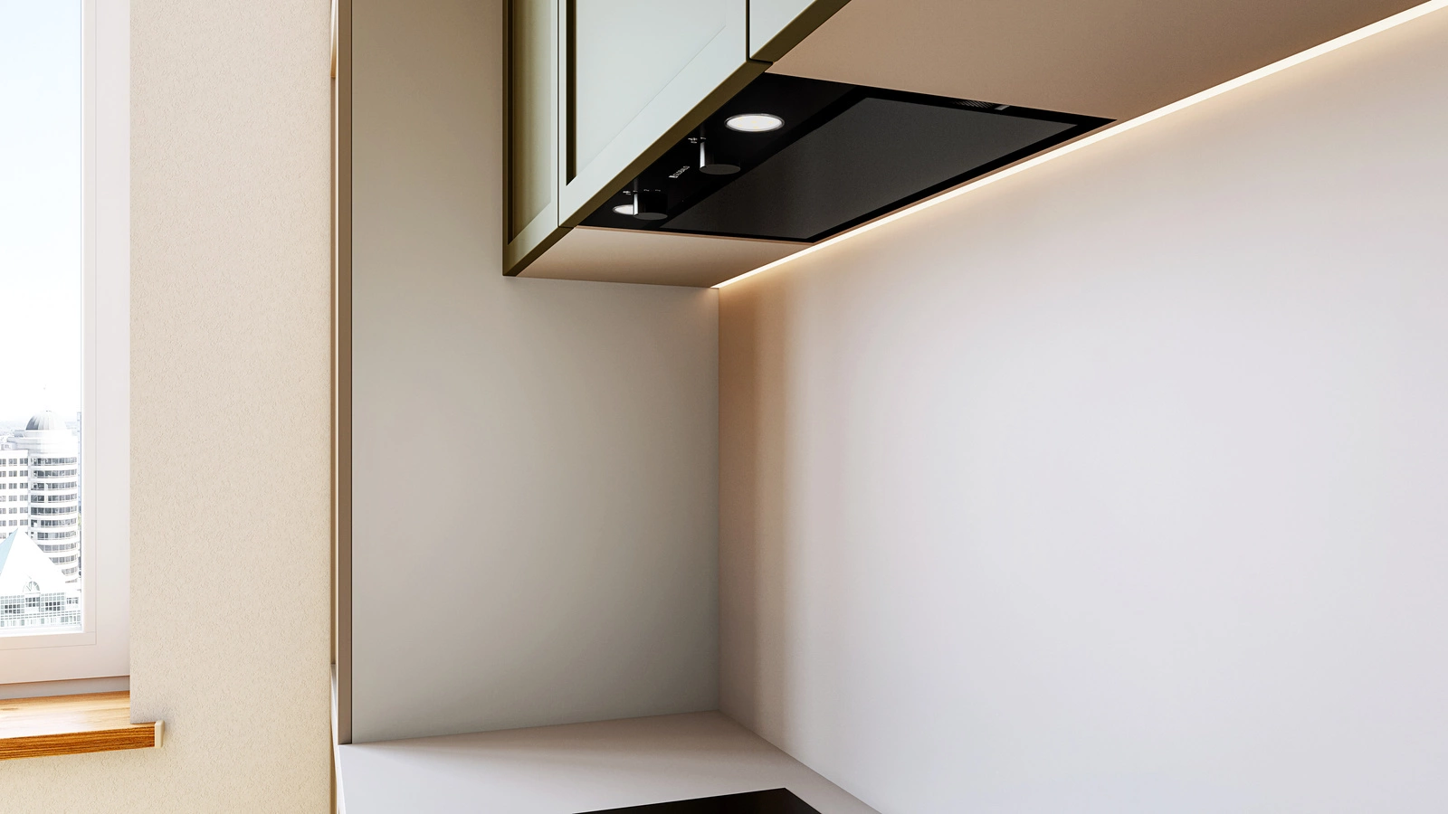 • Kompaktowy korpus o wysokości tylko 11,2 cm. pozwala na łatwe ukrycie okapu w kuchennej zabudowie i oszczędność miejsca.