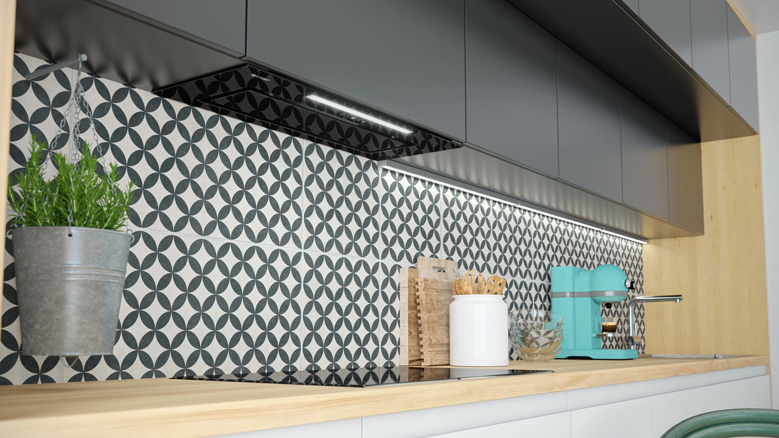 Okap kuchenny Loteo, dzięki szerokości zaledwie 80 cm, można dopasować do niemalże każdej kuchennej szafki.