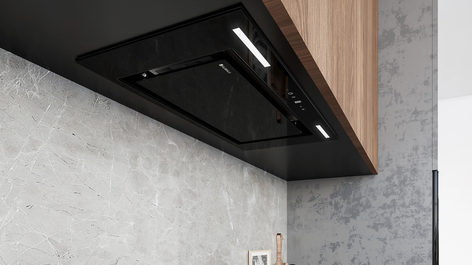 - Okapem kuchennym pod zabudowę Materi można sterować dotykowo (panel posiada także wyświetlacz LED).