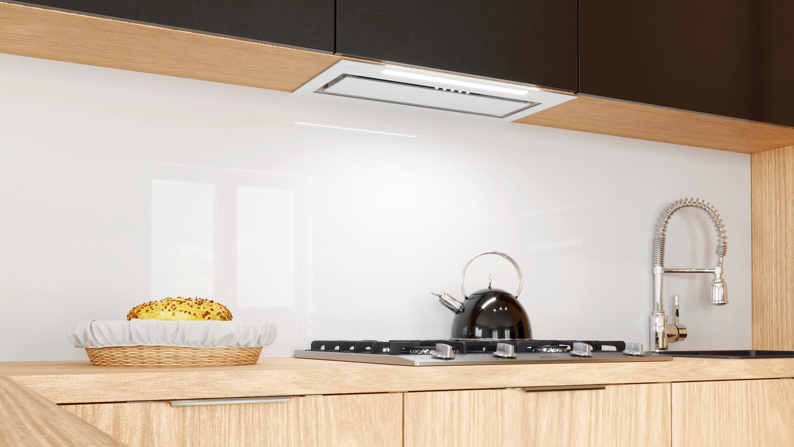 - Schowany w szafce okap jest cichy, a więc nie powoduje dyskomfortu wśród osób przebywających w kuchni.