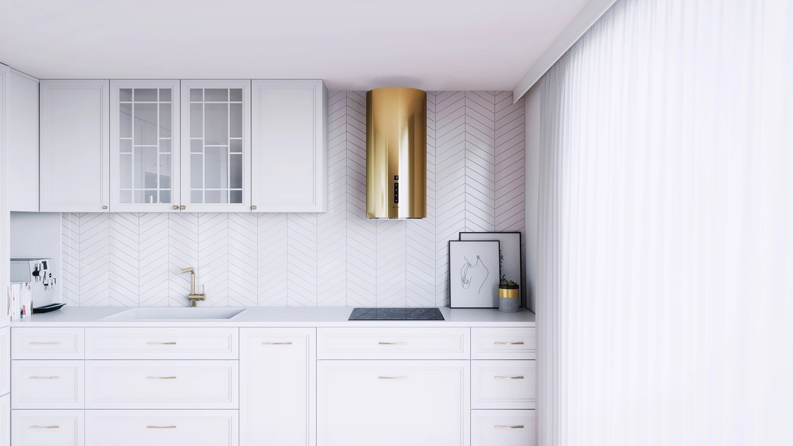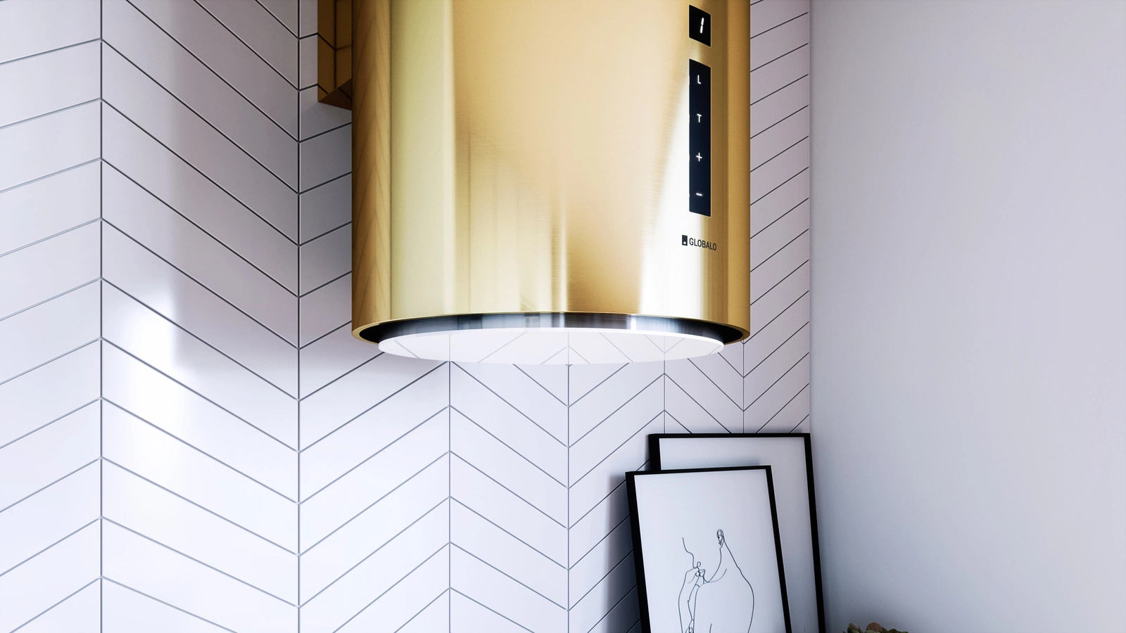 Połączenie stali lakierowanej na jasne złoto oraz wygodnego sterowania dotykowego pozwoliło stworzyć okap o niebanalnej stylistyce i ponadczasowym designie.