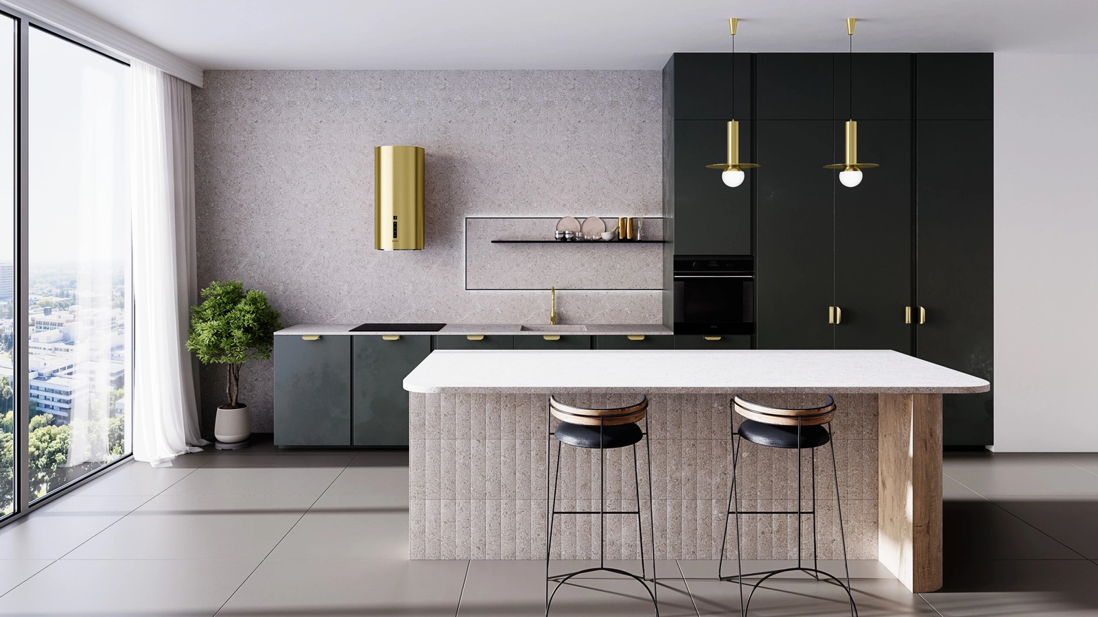 Połączenie stali lakierowanej na jasne złoto oraz wygodnego sterowania dotykowego pozwoliło stworzyć okap o niebanalnej stylistyce i ponadczasowym designie.
