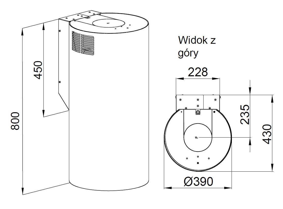 • Prezentowany okap przyścienny okrągły może działać w dwóch trybach. Pochłaniacz szybko i sprawnie filtruje powietrze w kuchni, natomiast wyciąg (po podłączeniu do kanału wentylacyjnego) odprowadza opary na zewnątrz.