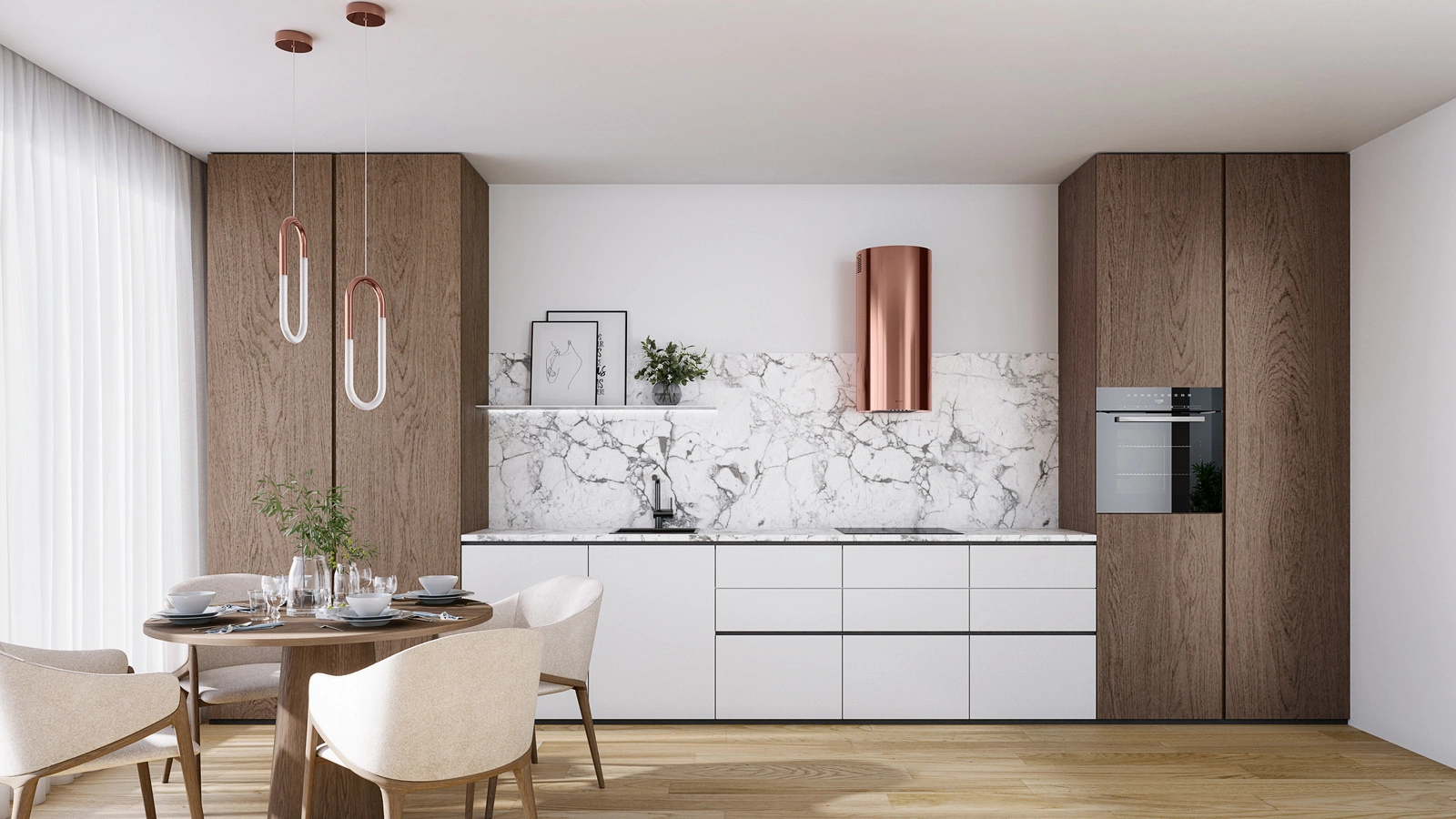 Połączenie stali lakierowanej na kolor miedziany oraz wygodnego sterowania push-button pozwoliło stworzyć okap o niebanalnej stylistyce i ponadczasowym designie.