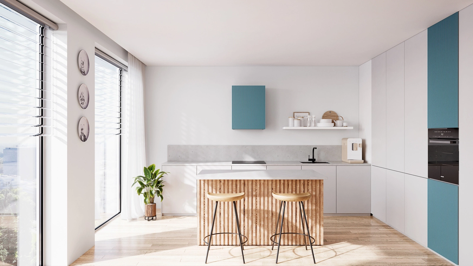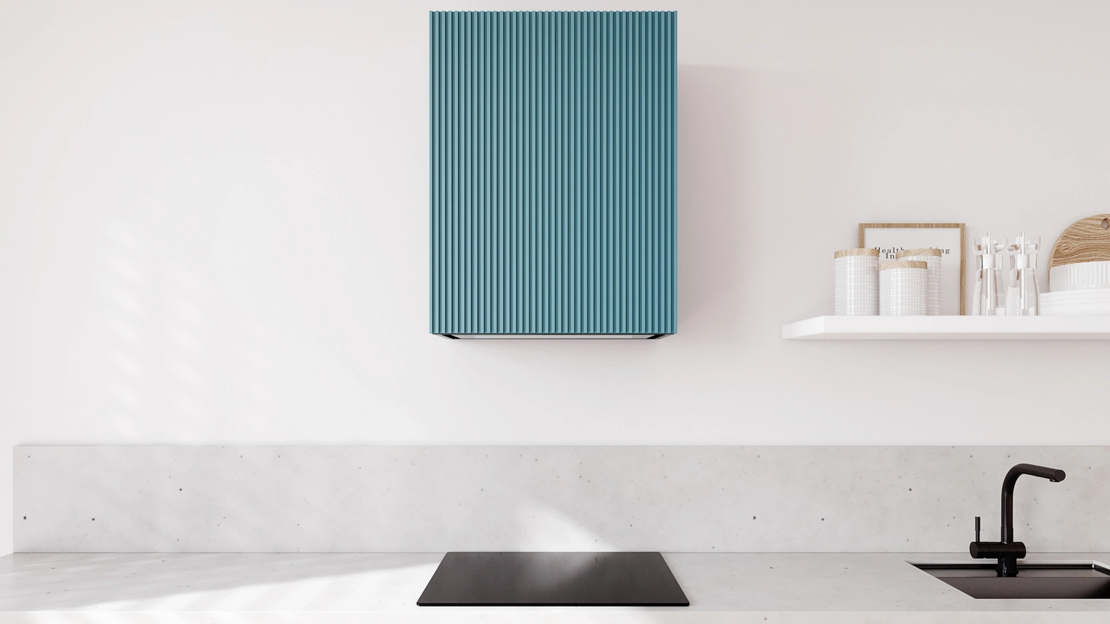 Lekka, interesująca forma okapu przyściennego Lowio 60.1 BL/Ocean Blue stworzona została z myślą o nowoczesnych, jasnych kuchniach. Niespotykany design z pewnością zachwyci wszystkich wielbicieli oryginalnie prezentujących się sprzętów. Okap sprzedawany jest w komplecie z szafką kuchenną, która dzięki swojej dekoracyjnej, ryflowanej powierzchni ucieszy każdego miłośnika nowoczesnych trendów.