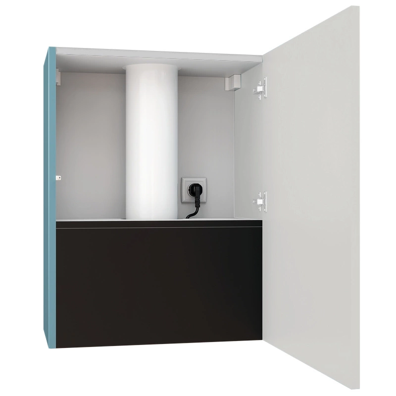 Okap z szafką Lowio 60.1 BL/Ocean Blue – stylowy i utrzymany w pastelowej kolorystyce – najlepiej sprawdzi się, wykorzystany w minimalistycznych, jasnych kuchniach.