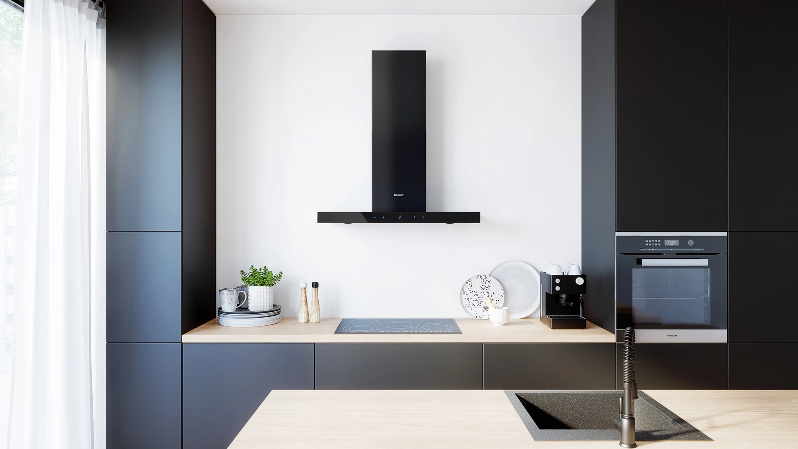 Verta 90.3 H2H Black to rozwiązanie dedykowane sympatykom tradycyjnych form i funkcjonalnych rozwiązań. Prezentowany okap kuchenny charakteryzuje się minimalistycznym, geometrycznym designem. Wyposażony jest w technologię H2H, która pozwala na sterowanie okapem z poziomu płyty indukcyjnej Fiali 60.1 H2H Black co zapewnia wygodę, precyzję, efektywność i sprawia, że jest to nowatorskie rozwiązanie dla kuchni we współczesnych domach. Okap posiada również regulację barwy i natężenia światła