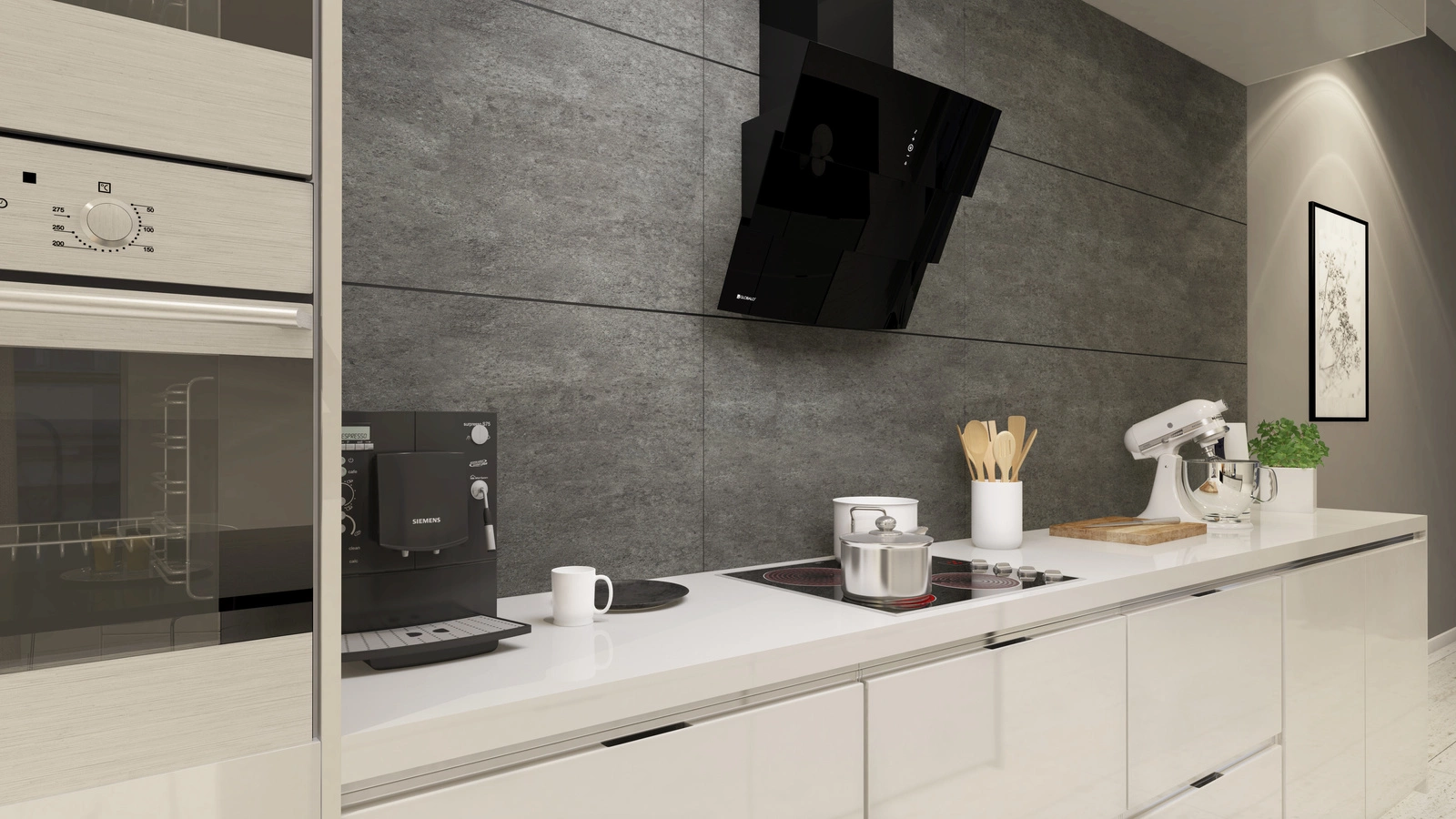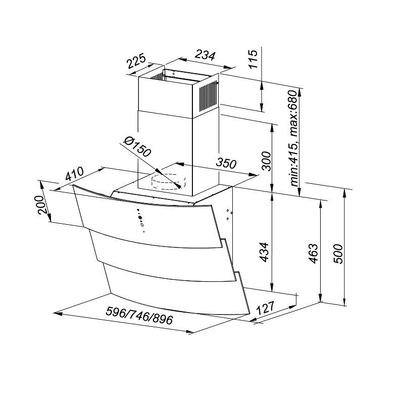 Vintio 60.2 Black to okap skośny, które pasuje do wnętrz o różnej stylistyce – zarówno minimalistycznych i delikatnych, jak i kolorowych i futurystycznych.Materiały: