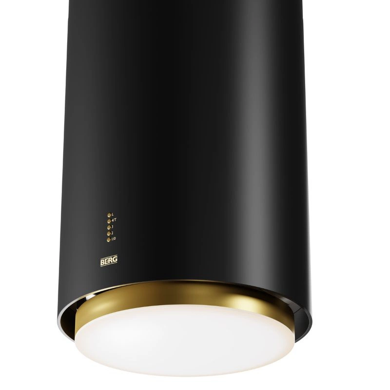Berg Floyd Premium Gold Isola to okap wyspowy o wysokości 90 cm, wykonany z najwyższej jakości lakierowanej stali nierdzewnej w kolorze czarnym ze złotym elementem dekoracyjnym. Precyzyjne wykończenie i dbałość o detale sprawiają, że okap ten staje się prawdziwym dziełem sztuki użytkowej. Nowoczesny design okapu idealnie pasuje do wnętrz kuchennych w stylu nowoczesnym, glamour i industrialnym, dodając im elegancji i charakteru.