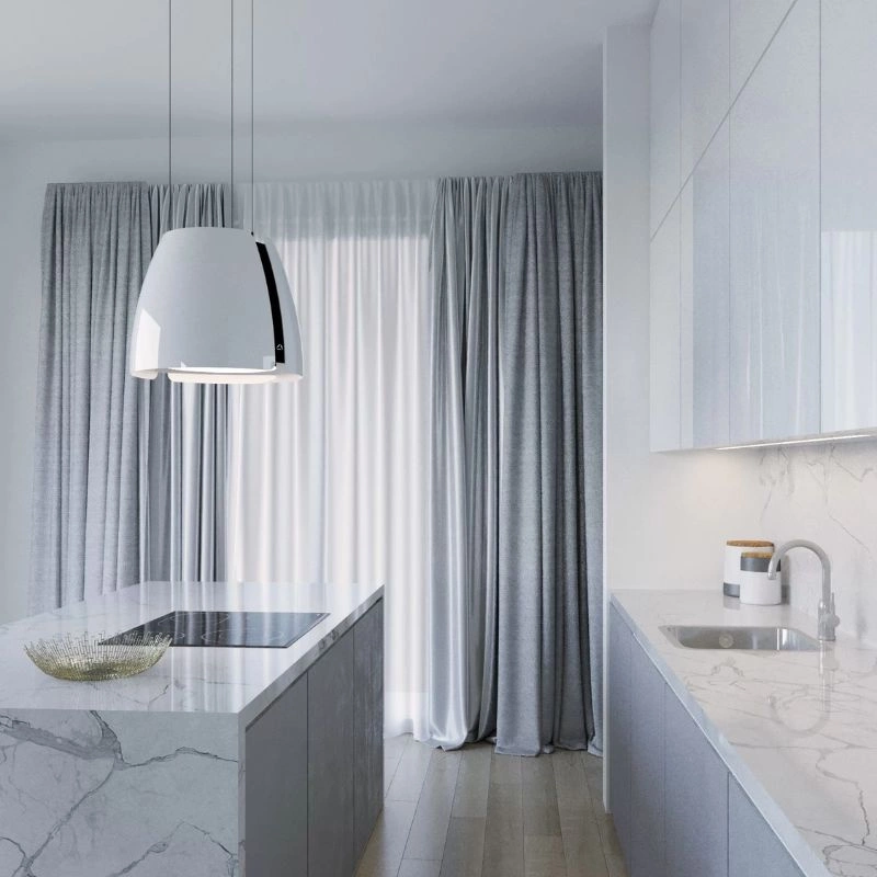 Okap wyspowy CIARKO Design Miss W  to doskonały wybór dla osób ceniących wysoką jakość, wydajność i nowoczesny design. Ten okap nie tylko zapewni czystość powietrza w Twojej kuchni, ale również stanie się jej ozdobą.