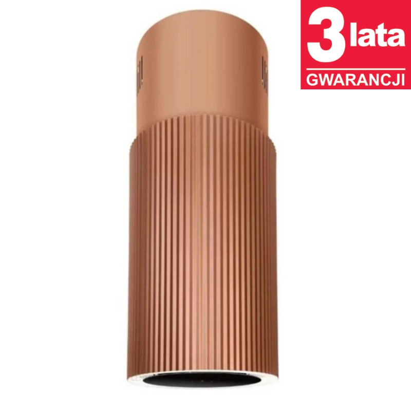Okap kuchenny wyspowy CIARKO Design Monogram W wyróżnia się cylindrycznym kształtem, który stanowi idealne dopełnienie nowoczesnych wnętrz. Ten okap w kształcie tuby zachwyca oryginalną powierzchnią, ozdobioną modnym ryflowaniem. To nie tylko urządzenie, ale również elegancka dekoracja Twojej kuchni.