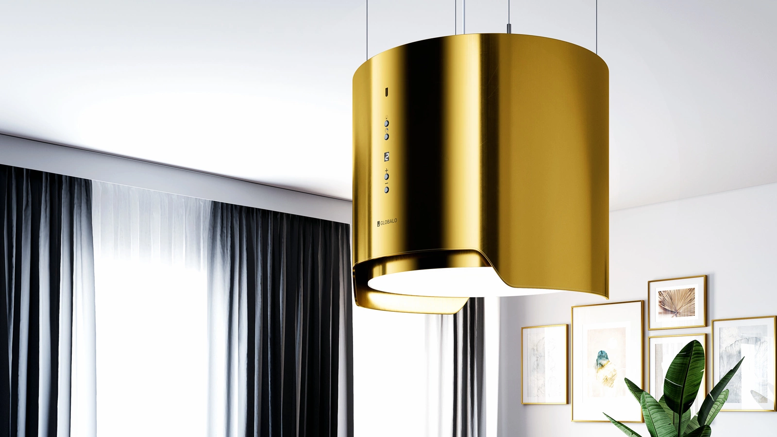 Spektakularna prezencja i doskonała wydajność. Okap wyspowy Arenoflow 39.4  Gold to absolutnie niezwykły element wyposażenia kuchennego wnętrza.