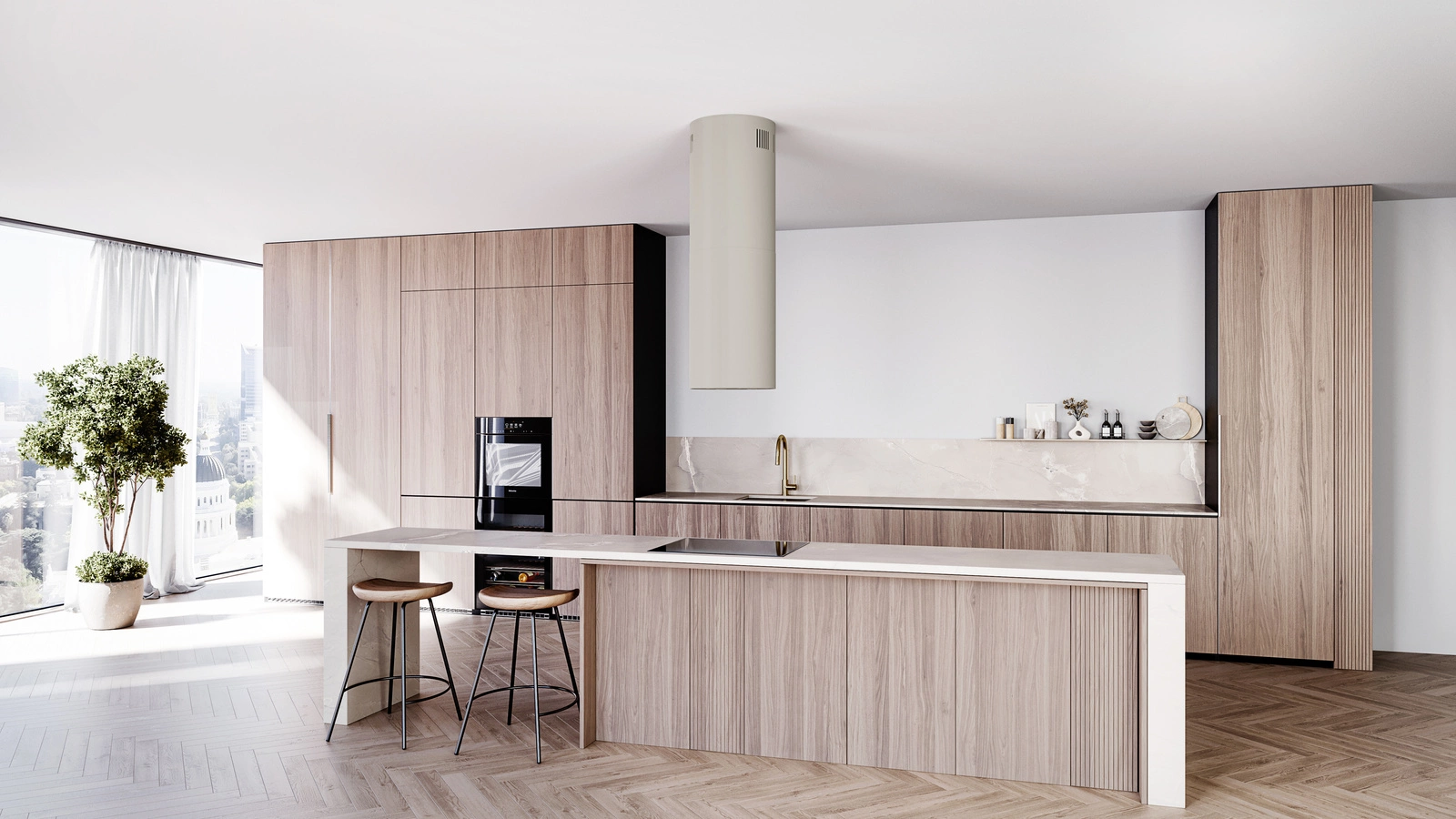 Cylindryczny okap wyspowy w najmodniejszym kaszmirowym odcieniu to must-have każdej stylowej kuchni! Nie tylko podkreśla nowoczesny charakter wnętrza, ale również zapewnia maksymalny komfort podczas gotowania. Dzięki imponującej wydajności 742 m³/h błyskawicznie pozbędziesz się zapachów i oparów, nawet przy intensywnym gotowaniu. A cicha praca na poziomie zaledwie 46 dB sprawi, że kuchnia pozostanie miejscem relaksu, wolnym od uciążliwego hałasu.