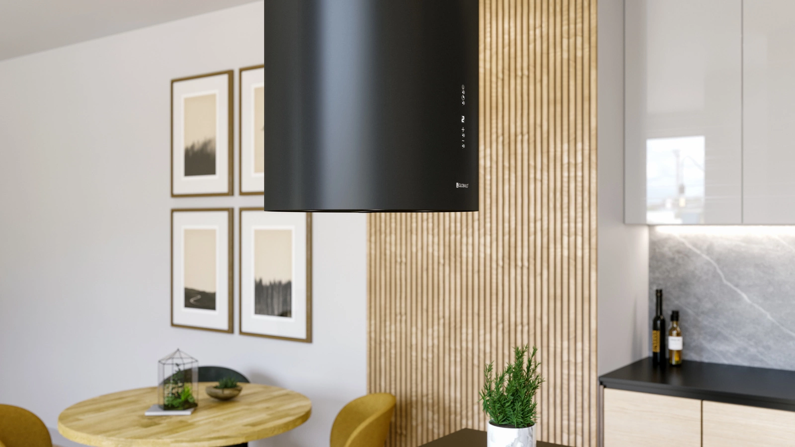 Cylindryczny okap przeznaczony jest do montażu nad wyspami kuchennymi. Takie rozwiązanie pozwala na maksymalne wykorzystanie dostępnej przestrzeni oraz zaaranżowanie funkcjonalnej kuchni.
