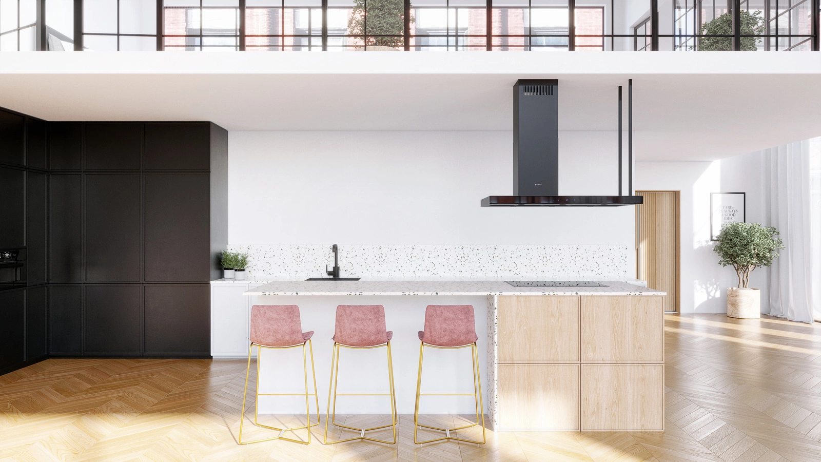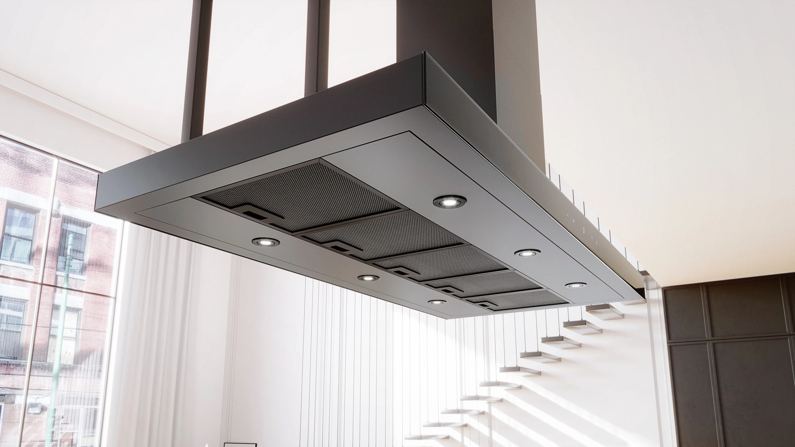 Noelia Isola 120.1 Black to okap wyspowy zaprojektowany dla miłośników oryginalnych i eleganckich kuchni. Prezentowany model charakteryzuje się znakomitą technologią idącą w parze ze stylowym wyglądem. Klasyczny kształt odwróconej litery „T” urozmaicony został stalowym stelażem inspirowanym wnętrzami loftowymi. Przedłużona półka okapu może służyć jako miejsce do ustawienia dekoracji oraz domowych roślin.- Maksymalna wydajność: 725 m3/h