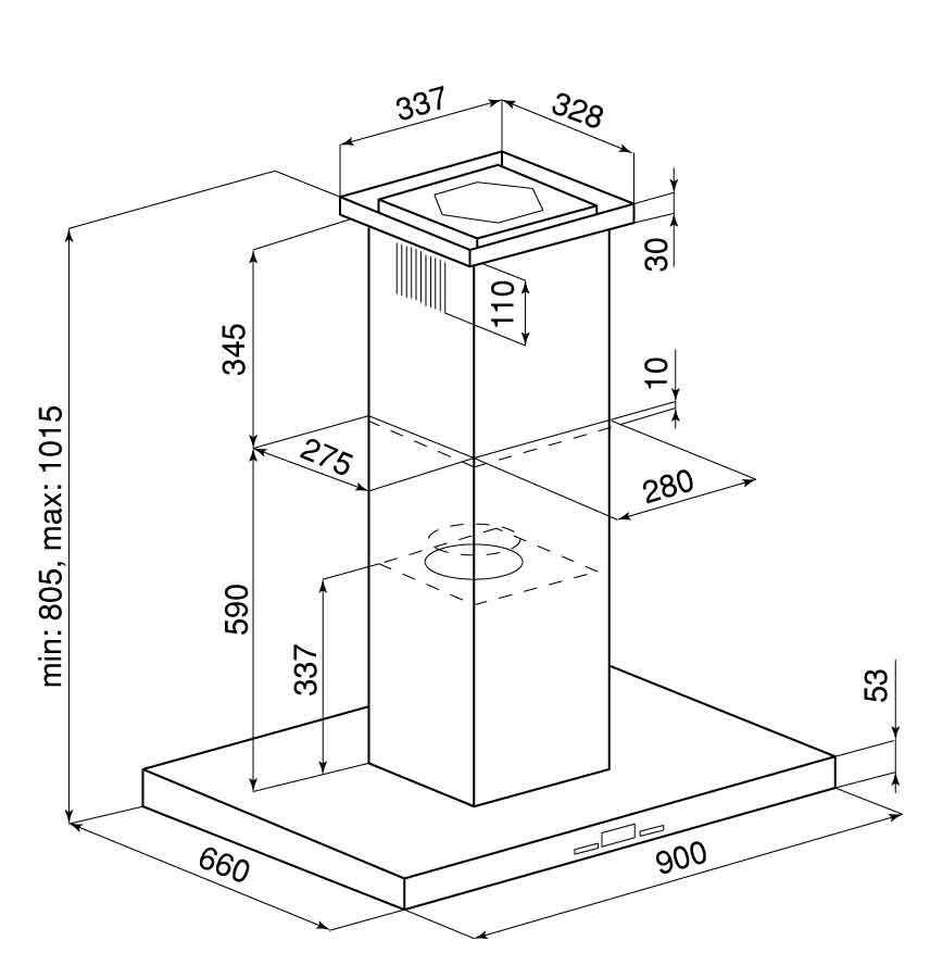 - Okap wyspowy sterowany jest za pomocą wygodnych w użyciu klawiszy Soft-Touch. Panel do regulacji wyposażono również w czytelny wyświetlacz LCD.