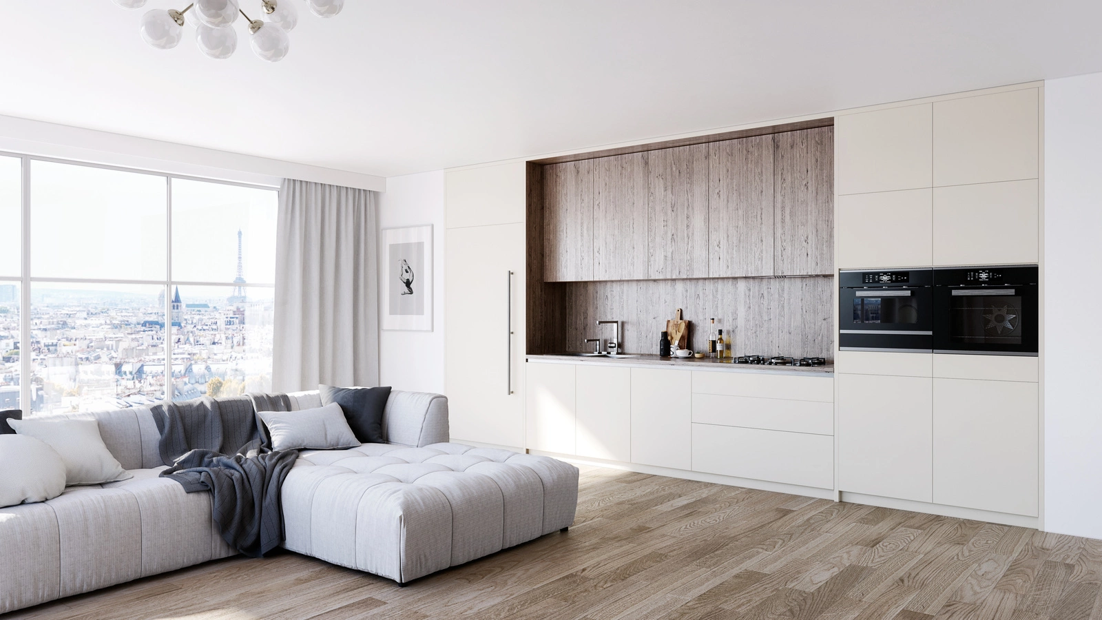- Kompaktowy korpus o wysokości tylko 14,2 cm. pozwala na łatwe ukrycie okapu w kuchennej zabudowie i oszczędność miejsca.